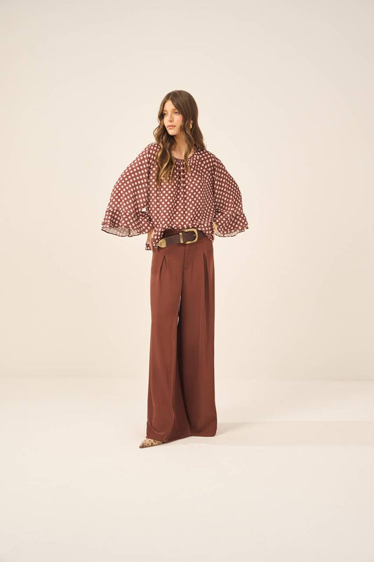 Blusa Bata Estampa Chiffon - Poá Marrom BLU0004POA