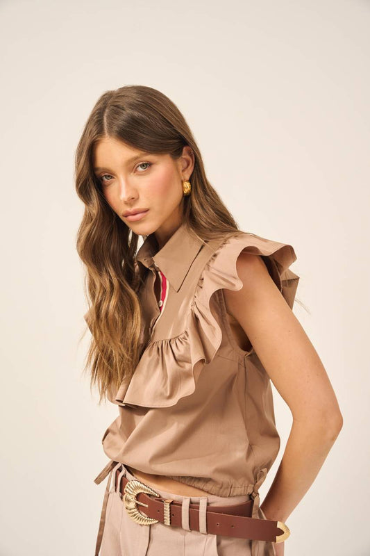Blusa algodão Babado - Caqui BLU0009CAQ