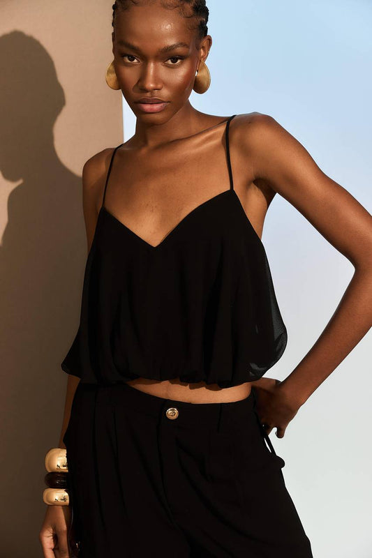 Blusa Alça Cintura Drapeado - Preto BLU0035PTO