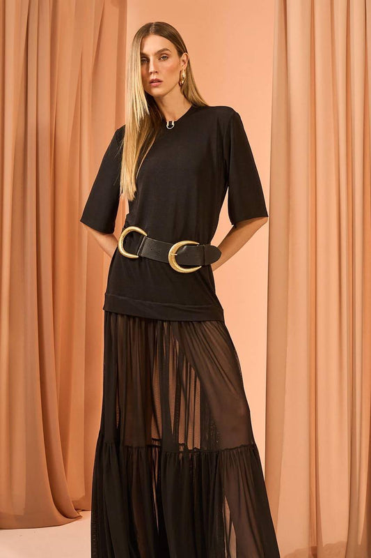 Vestido Shape Reto Jersey Com Tule - Preto VES2037