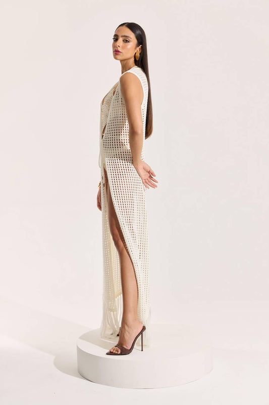 Vestido Saída Tricô Com Franjas - Off White VES0082OFF