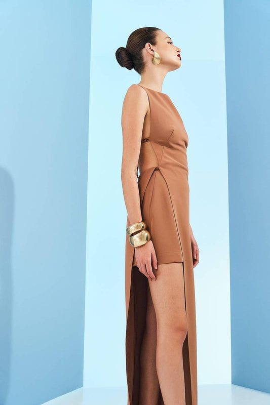 Vestido Reto Com Fendas Laterais - Mocha VES0056MCH