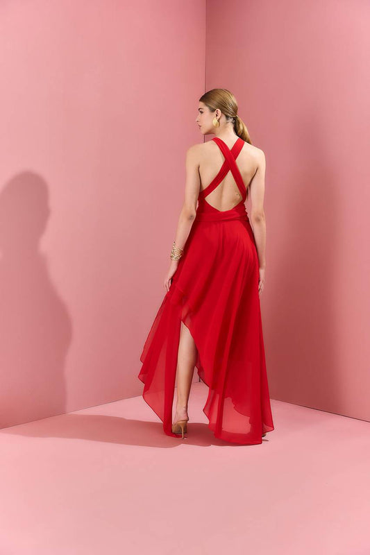 Vestido Assimétrico Maxi Amarração No Pescoço - Vermelho VES0059-VEM