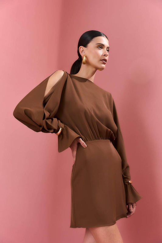 Vestido Curto Manga Vazada - Marrom VES0044MRO