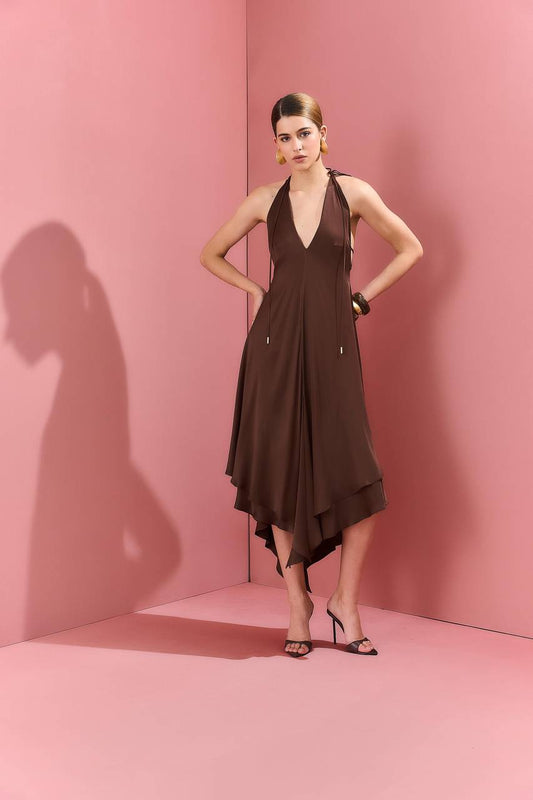 Vestido Decote V Longuete C/ Pontas - Marrom VES0048MRO