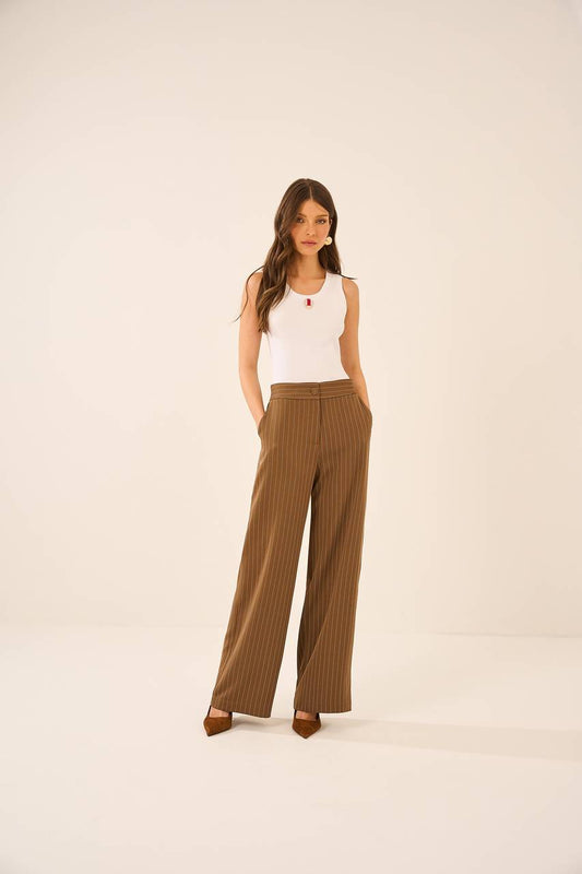 Calça Risca De Giz - Caramelo CAL0016PELE