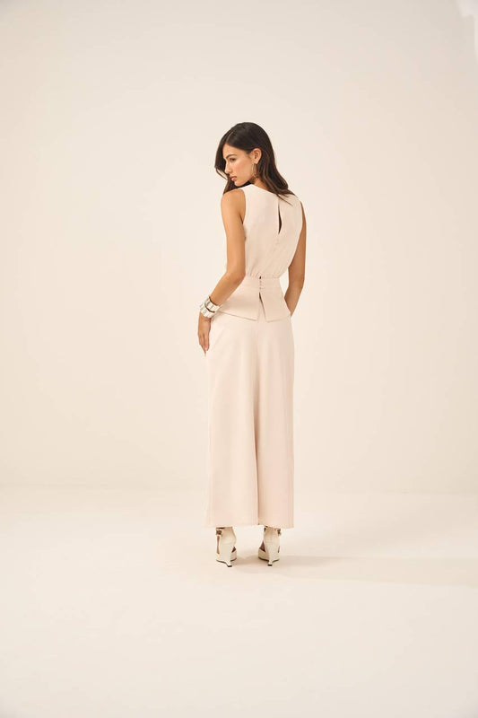 Conjunto Colete Cropped Com Calça Linho - Marrom CJT0009MRO
