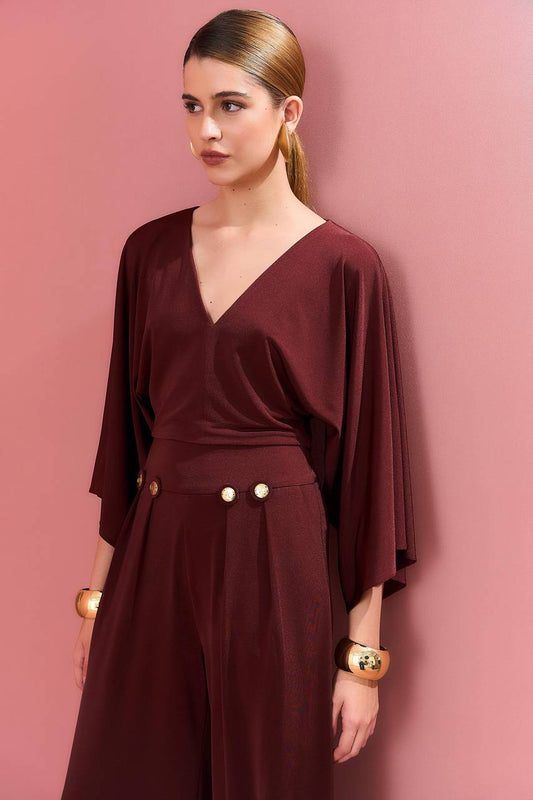 Conjunto Jersey Calça E Blusa Decote V - Tobaco CJT0028TB