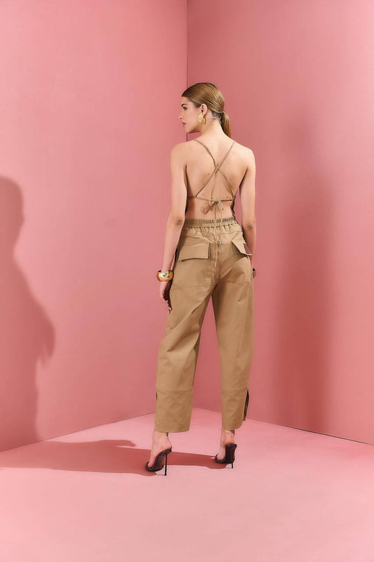Macacao Sarja Costas Amarração - Camel MAC0028CAM