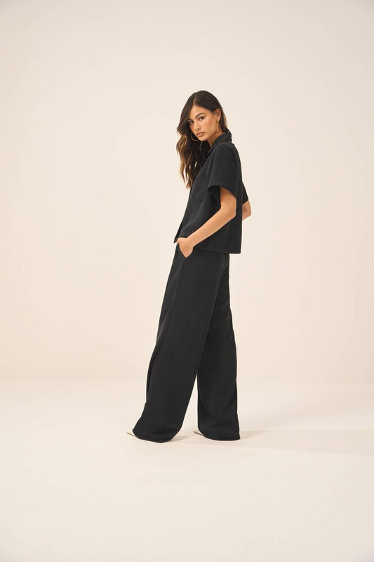 Conjunto Camisa Crepe Calça Elastico - Preto CJT0005PTO