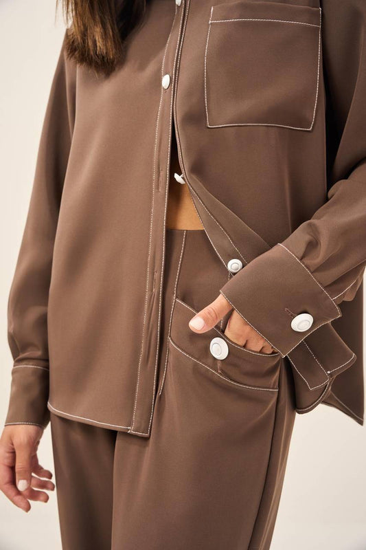 Camisa Crepe Pesponto - Chocolate CAM0010CHO