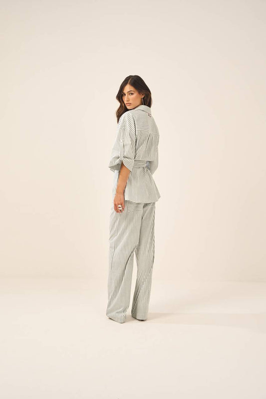 Camisa algodão Manga 3/4 Listrada - Branco/verde Militar CAM0009BR/VMT