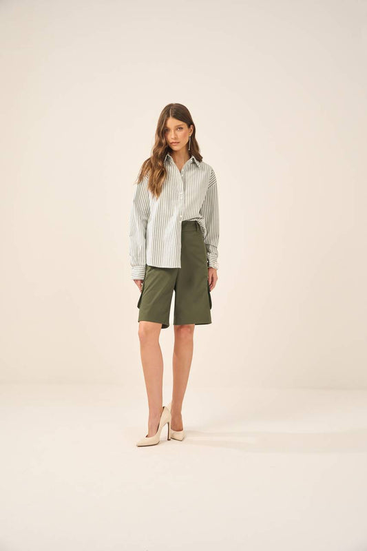 Camisa algodão Listrada Mangas Longas - Branco/verde Militar CAM0002BR/VMT