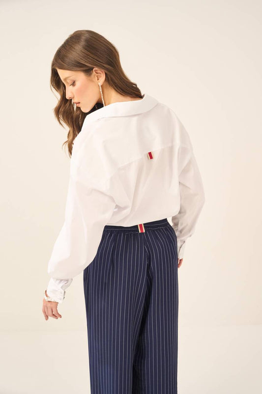Camisa algodão Listrada Mangas Longas - Branco/marrom CAM0002BR/MRO