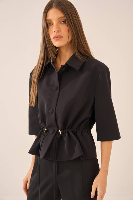 Casaqueto Em Alfaiataria Com Cintura Ajustável - Preto CAS0001PTO