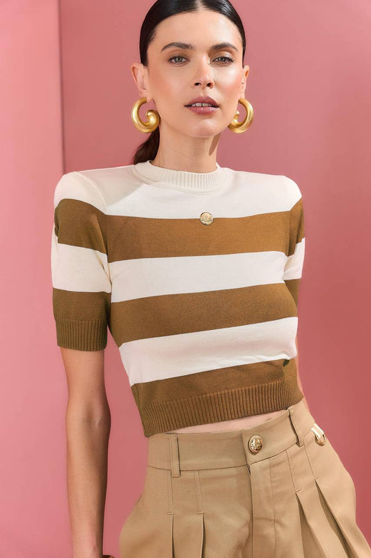 Blusa Tricô Listras - Caramelo / Off BLU0055CAR/OFF
