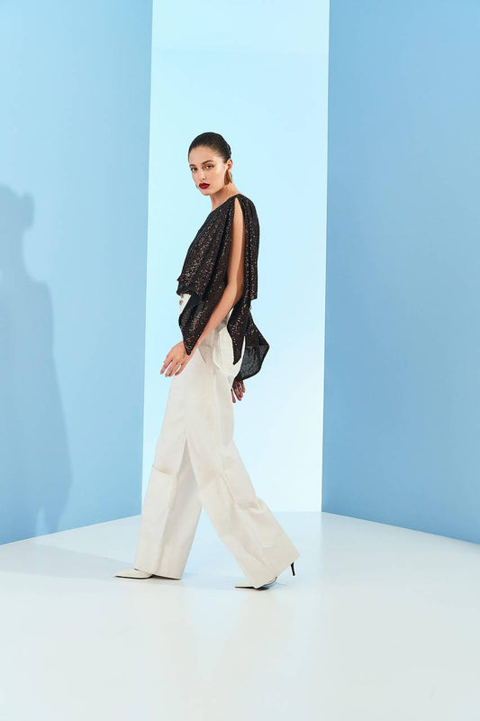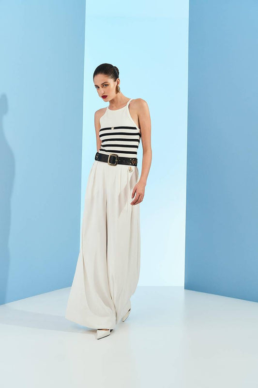 Calça Wide Leg Recortes Pernas - Off White CAL0083OFF
