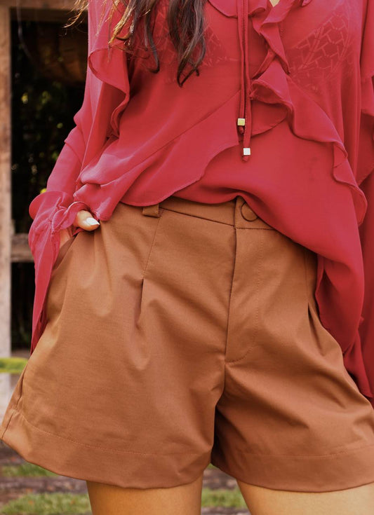 PromoçãoFavoritarShort Com Pregas - Marrom SHO0001MRO