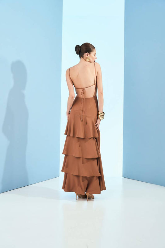 Vestido Com Vazado Frente - Mocha VES0057MCH