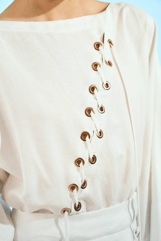 Blusa Crepe Manga Envelope C/ Transparencia - Off White BLU0054OFF