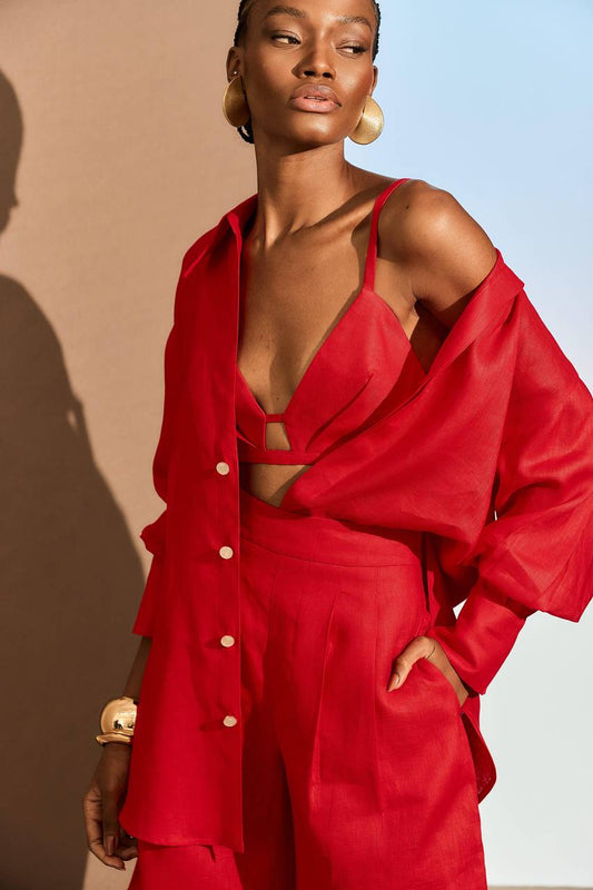 EsgotadoFavoritarCamisa Linho - Vermelho CAM0022-VEM