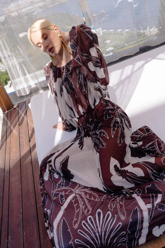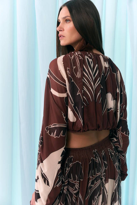 Blusa Tule Manga Farta Estampa Palm - BLU2022