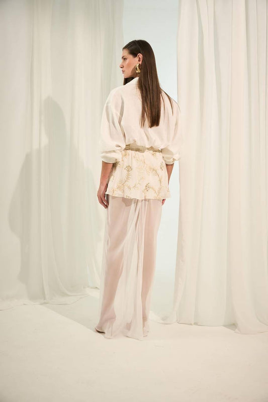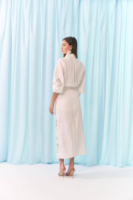 Saia Linho Com Aplicações Guippir - Off White SAI2001