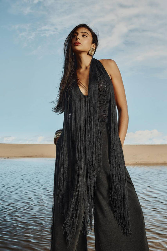 Vestido Fenda Com Amarração - Preto VES2002PTO