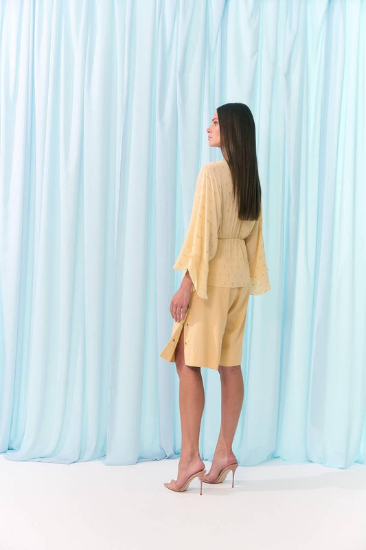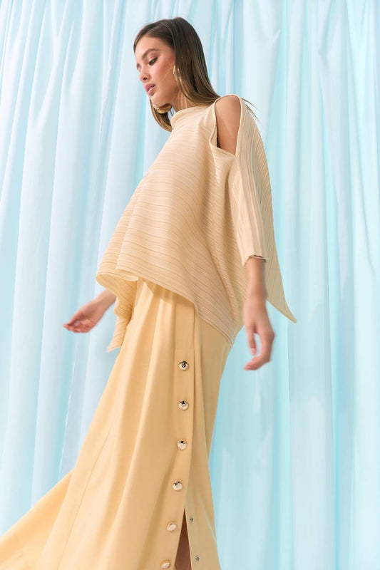 Blusa Ombro Vazado Plissê - Manteiga BLU2010MAN