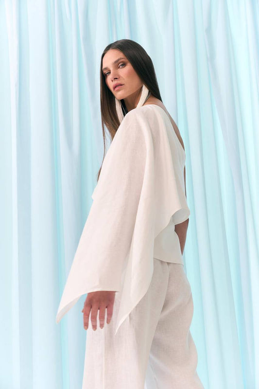 Blusa Envelope Linho Ombro Só - Off White BLU2004