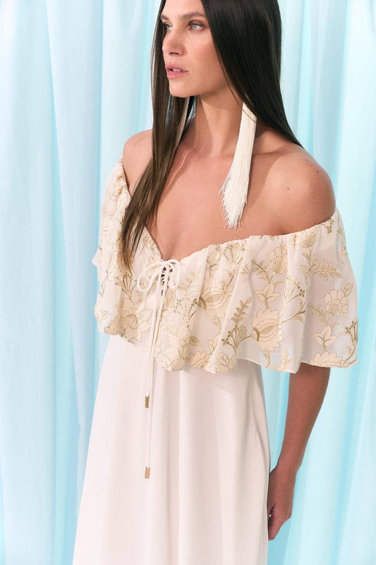 Vestido Longo Aplicação Cintura - Off White VES2003OFF