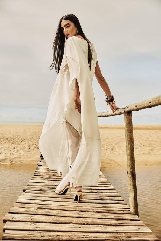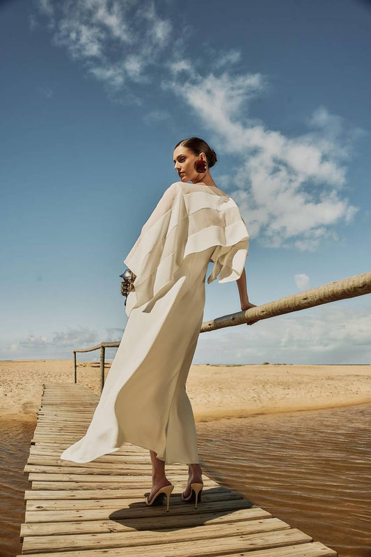 Vestido Longuete Crepe C/ Transparência - Off White VES0032OFF