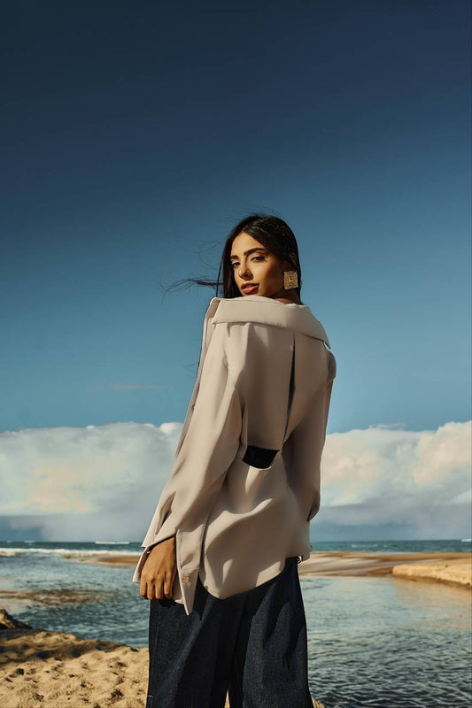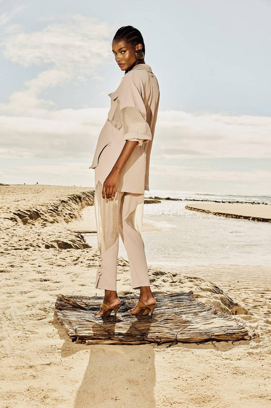 Camisa Crepe E Transparência - Bege CAM0017BEG