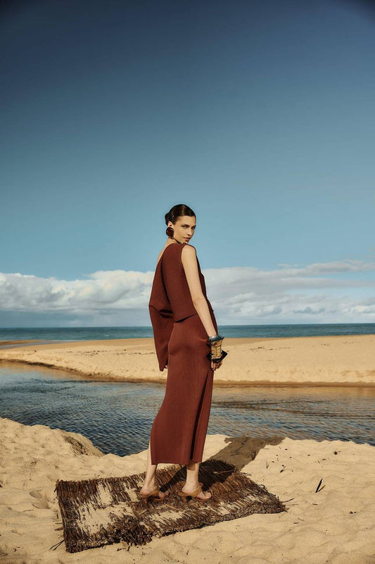Vestido Longuete Ombro A Ombro Fenda - Terra Cota VES0026TERC