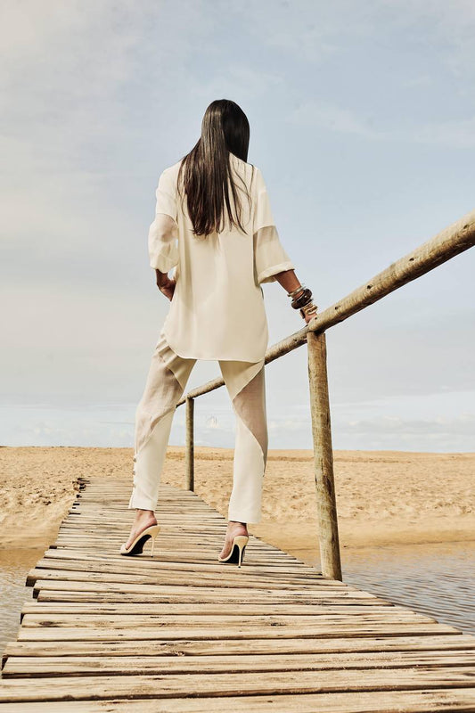 Camisa Crepe E Transparência - Off White CAM0017OFF