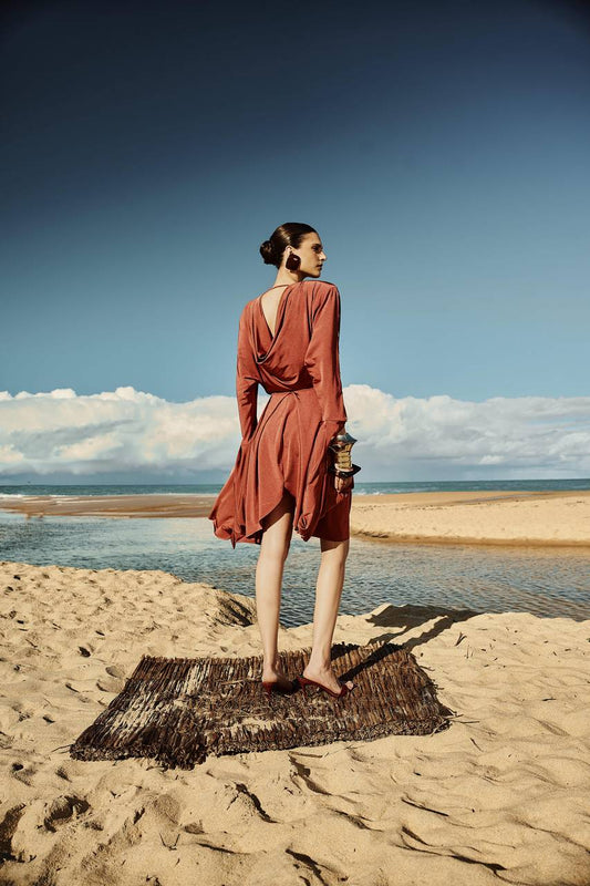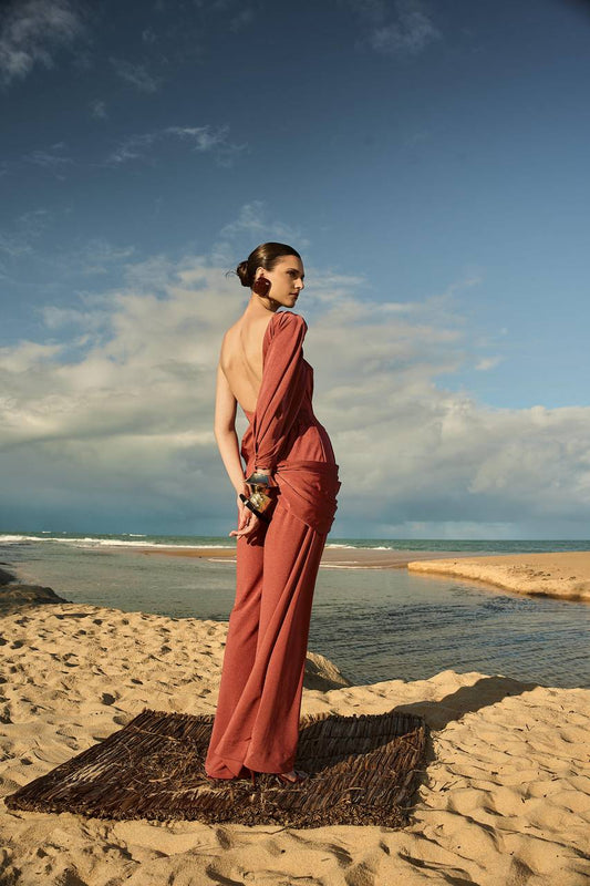 Vestido Midi Jersey Ombro Faixa Drapê - Terra Cota VES0036TERC