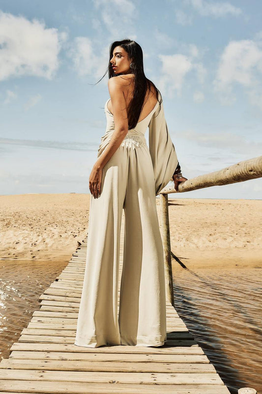 Calça Crepe Com Transparência - Bege CAL0049BEG