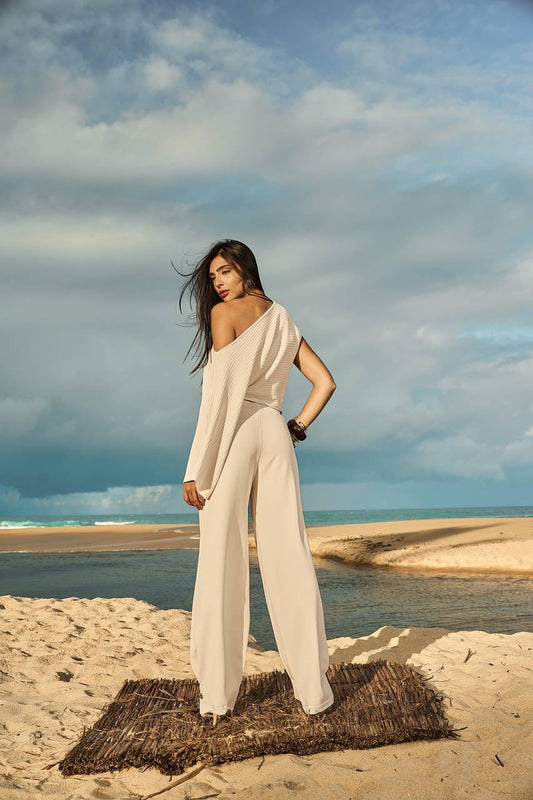 Calça Crepe Com Transparência - Off White CAL0049OFF