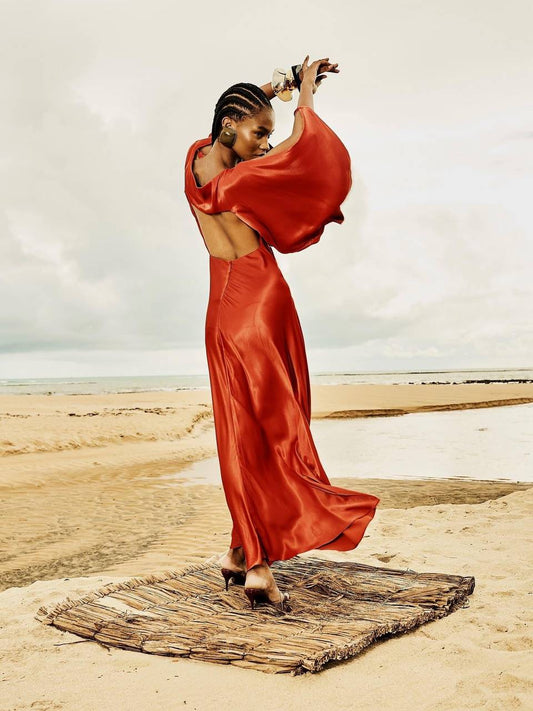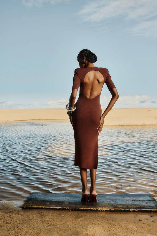 Vestido Midi Com Abertura Nas Costas - Marrom VES0045MRO