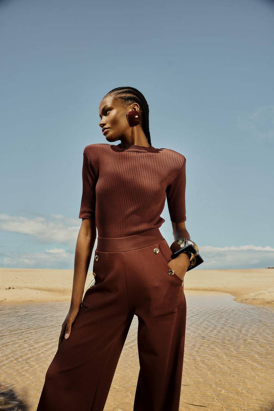 Calça Tricot Slouchy - Marrom CAL0067MRO