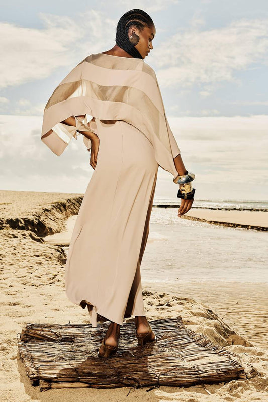 Vestido Longuete Crepe C/ Transparência - Bege VES0032BEG