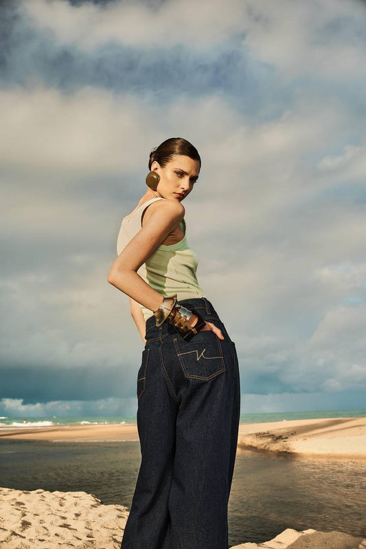 Calça Slouchy Sarja - Azul Sky CAL0040-AZUL SKY