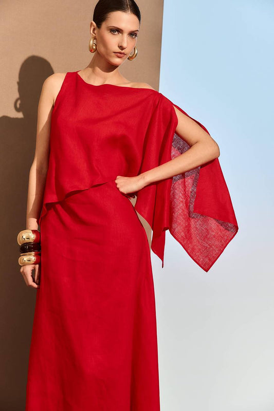 Vestido Midi Linho Assimétrico - Vermelho VES0040-VEM