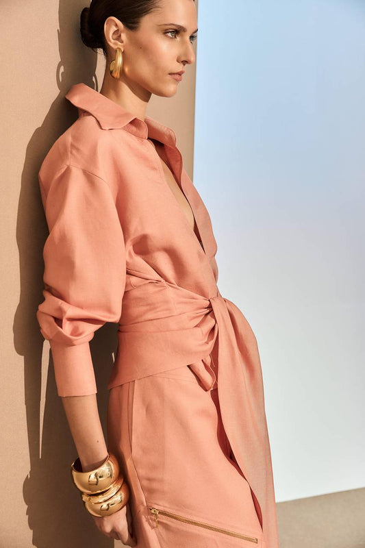 Camisa Linho Faixa Amarração - Peach CAM0019-PEA