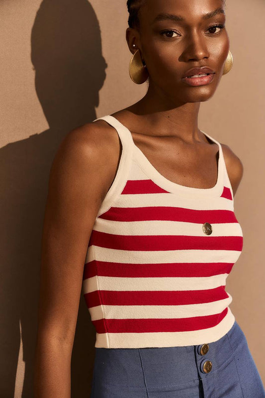 Regata Tricô Listras - Vermelho/off BLU0058VE/OFF