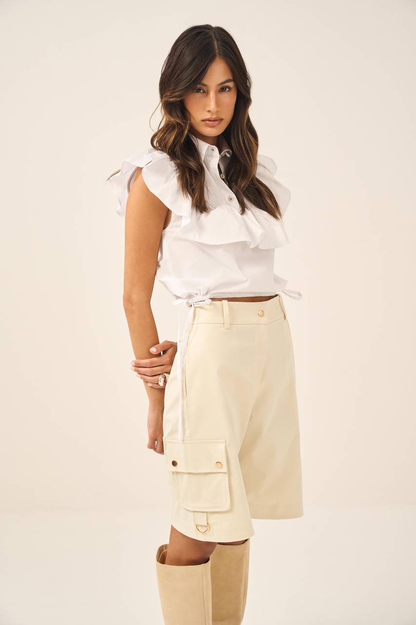 Bermuda de alfaiataria com corte reto e comprimento sofisticado, perfeita para um visual moderno e elegante. Confeccionada em tecido de alta qualidade, oferece caimento impecável e conforto. Versátil, pode ser combinada compartes de cima variadas, garantindo um look refinado ou com um toque mais descontraído.