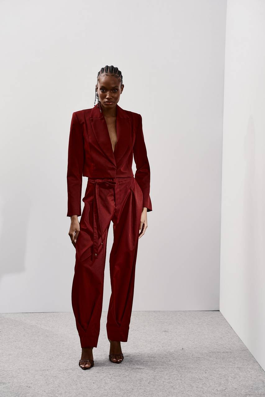 Blazer confeccionado em tecido encorpado de alfaiataria, com modelagem estruturada e caimento preciso que valoriza a silhueta. A gola clássica e o fechamento frontal garantem elegância atemporal, enquanto o detalhe de amarração na cintura adiciona modernidade e possibilidade de ajuste. Versátil e sofisticado, é ideal para produções elegantes, composições monocromáticas ou sobreposições contemporâneas com identidade KOHDE.