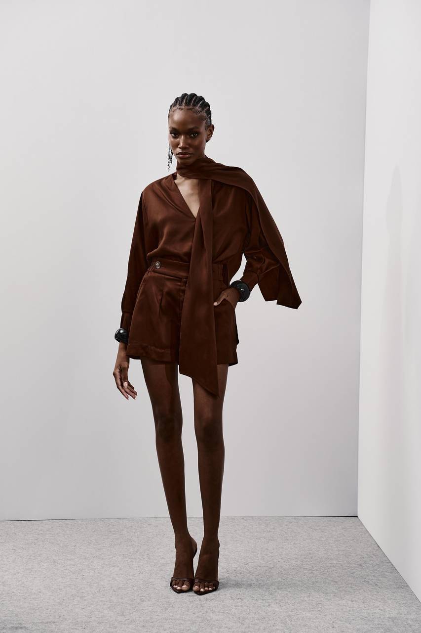 Blusa confeccionada em tecido leve de toque macio, com caimento fluido que traz elegância e conforto ao vestir. O destaque fica por conta do detalhe alongado no decote, que permite diferentes formas de amarração e adiciona sofisticação ao visual. As mangas longas com leve volume equilibram a silhueta e reforçam a estética contemporânea da peça. Versátil e atemporal, é ideal para produções refinadas, composições minimalistas ou looks elegantes do dia à noite.