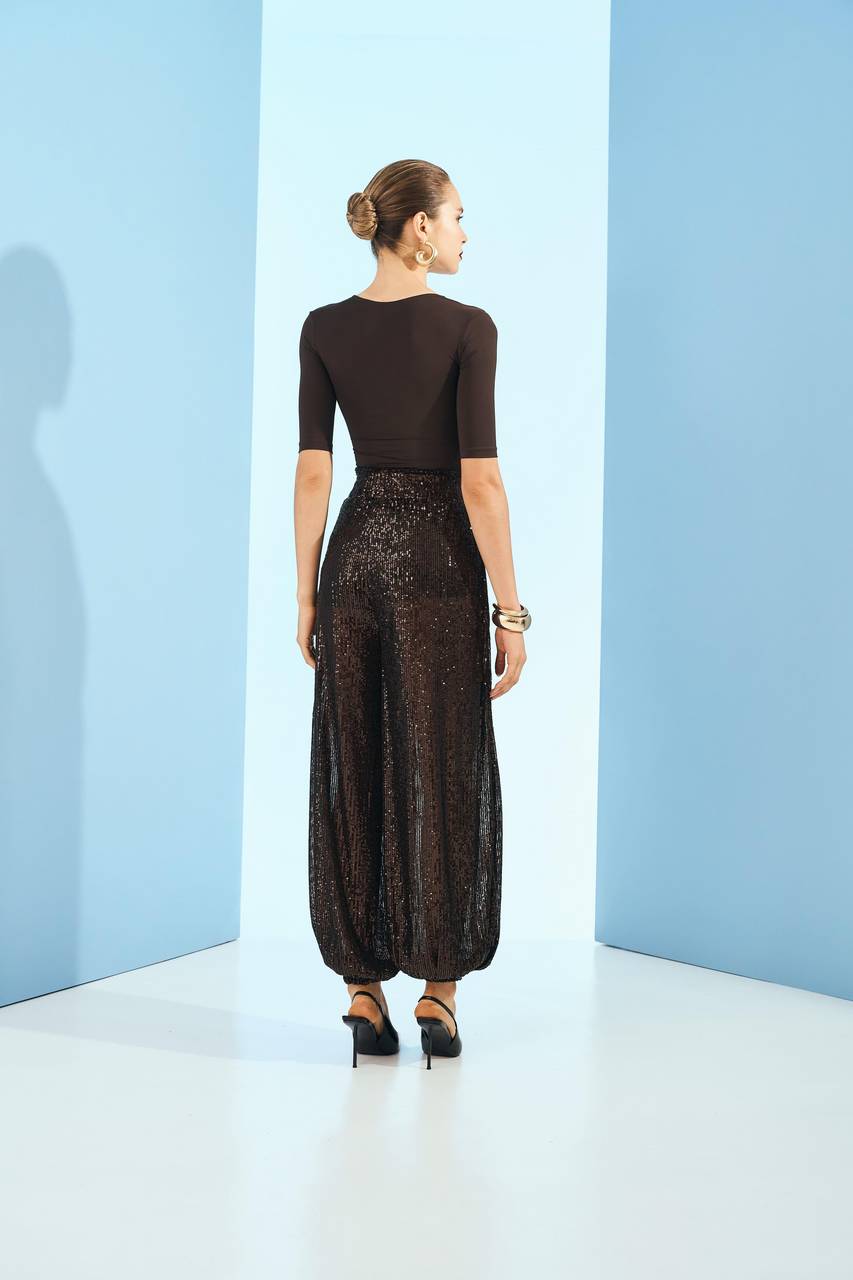 Calça Balonê De Paetê - Marrom CAL0081MRO