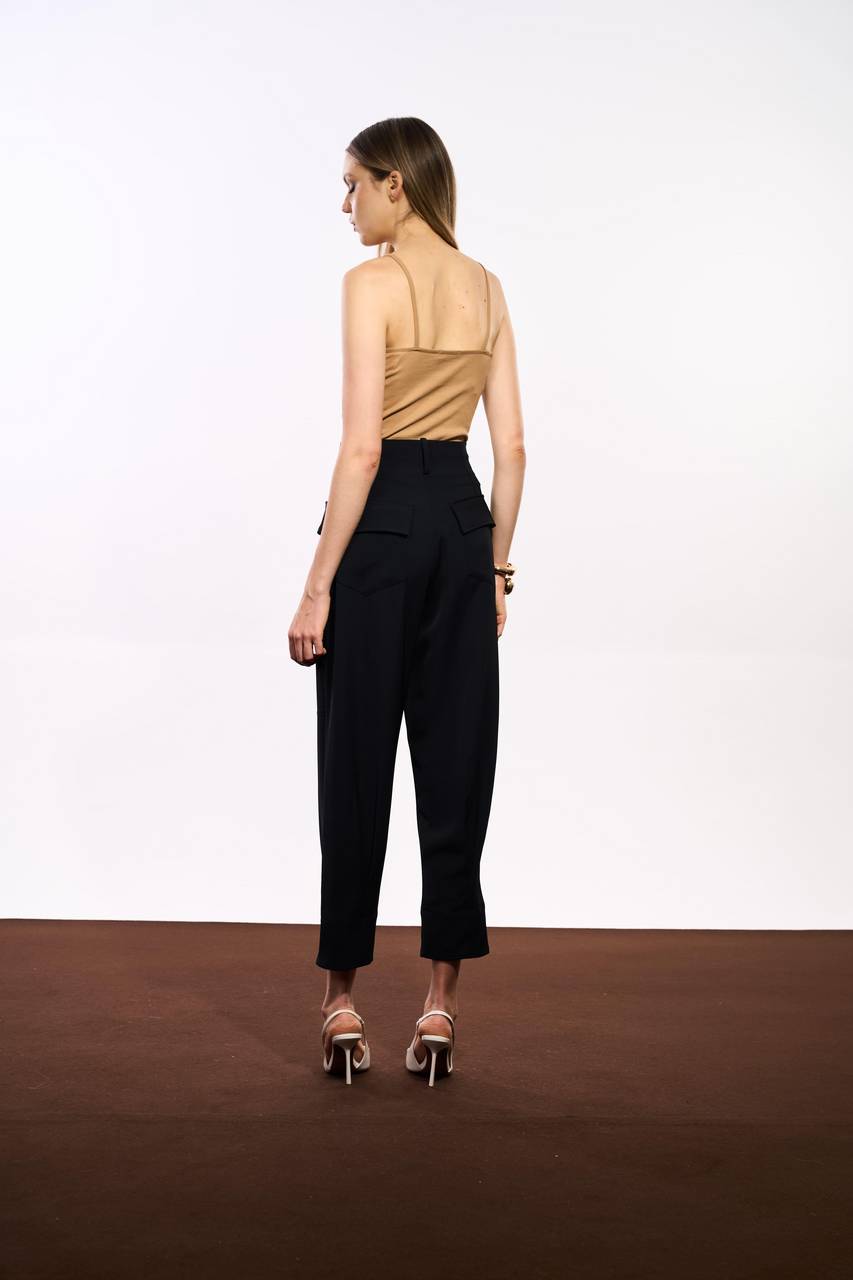 Calça confeccionada em tecido encorpado de alfaiataria, com modelagem reta que garante elegância e conforto ao vestir. O design com bolsos frontais aplicados e botões aparentes adiciona personalidade e uma leitura utilitária contemporânea à peça. O caimento estruturado valoriza a silhueta e traz sofisticação ao visual. Uma proposta moderna que atualiza a alfaiataria com atitude.